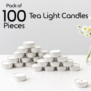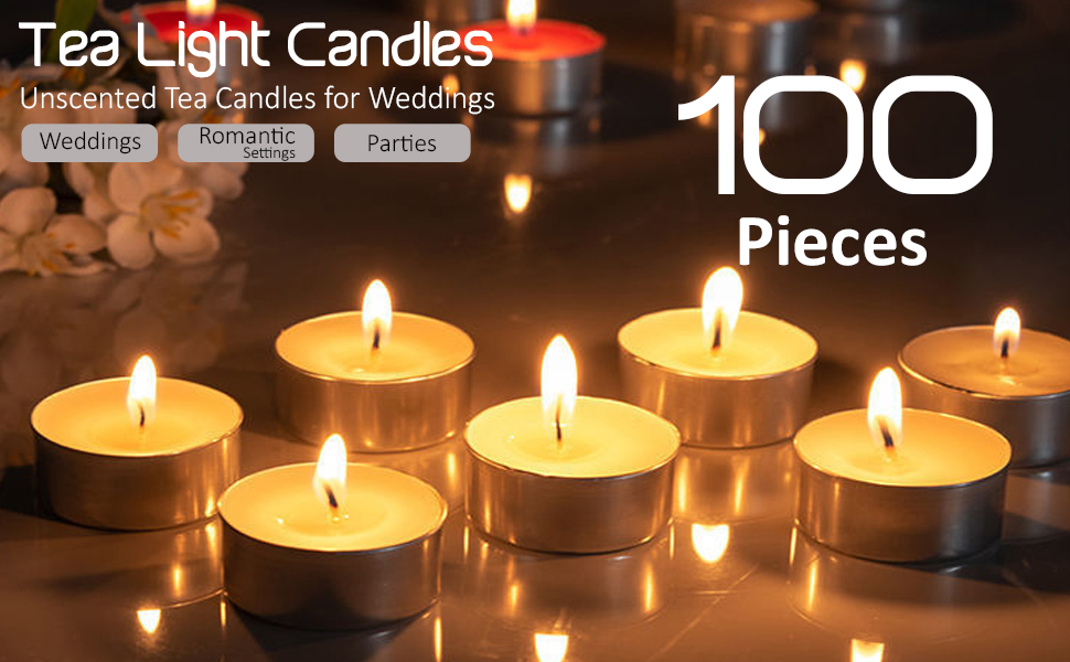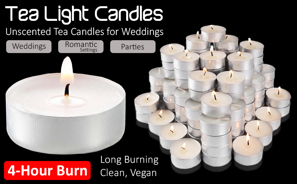 100 Pcs Tea Candles with Aluminum Cups, Clean & Vegan 4-Hour Long Burning Tea Lights For Home Pool Dinner Weddings Aromatherapy