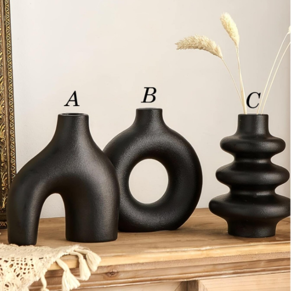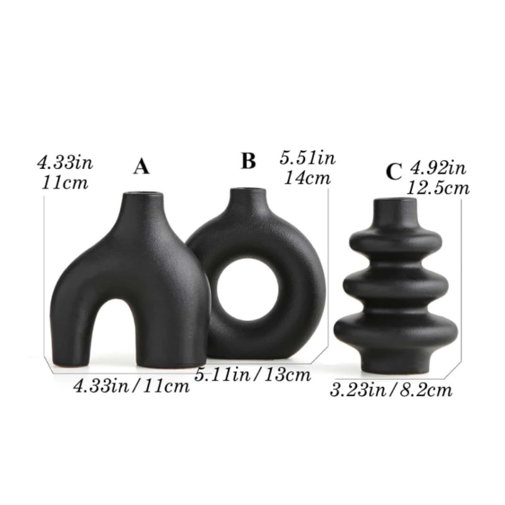 3-Piece Bohemian Ceramic Vase Set – Modern Geometric Round Decorative Vases in White Donut and Gourd Shapes. Perfect for Table Centerpieces, Living Room, Bedroom, Wedding, and Valentine’s Day Décor. An Elegant Choice for