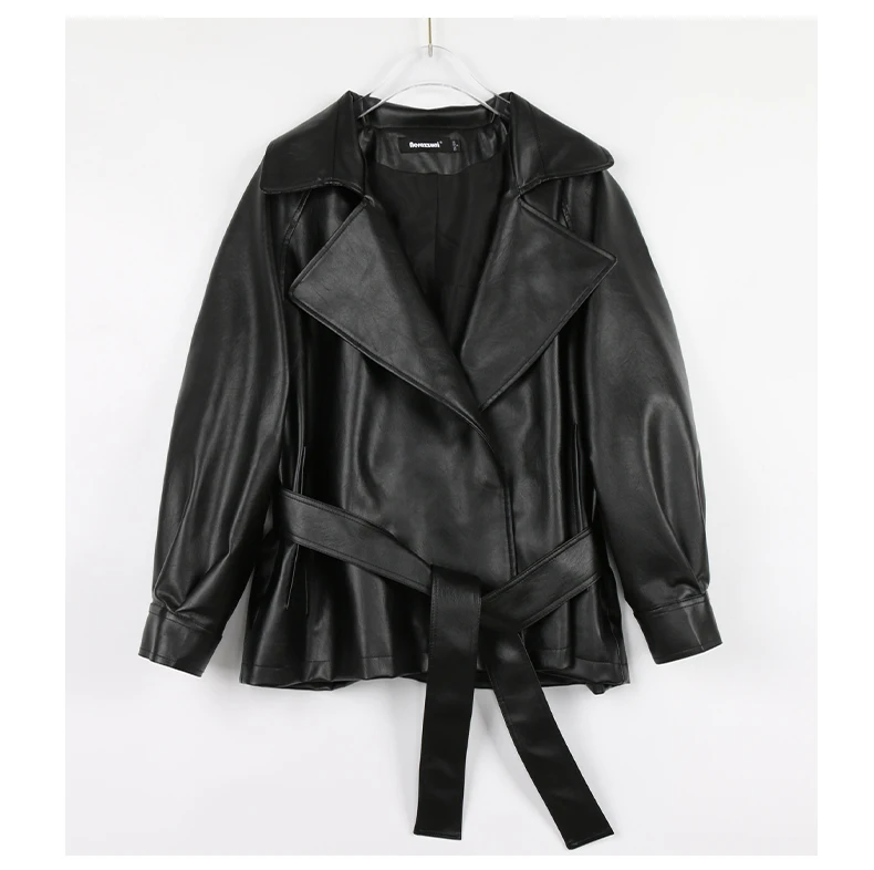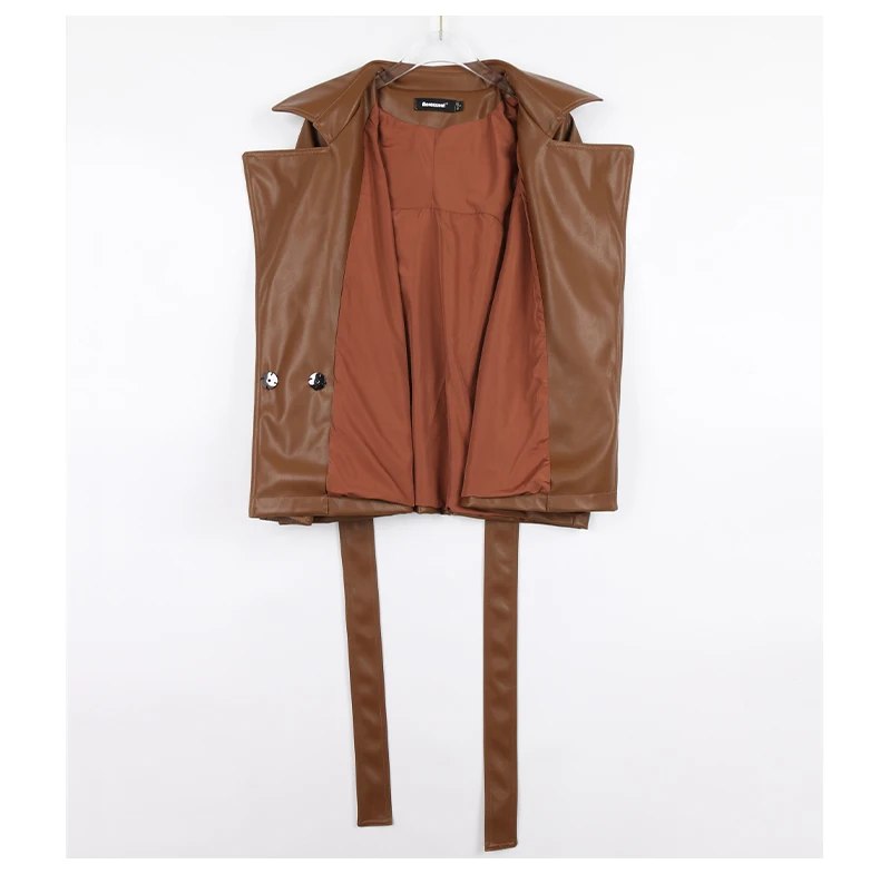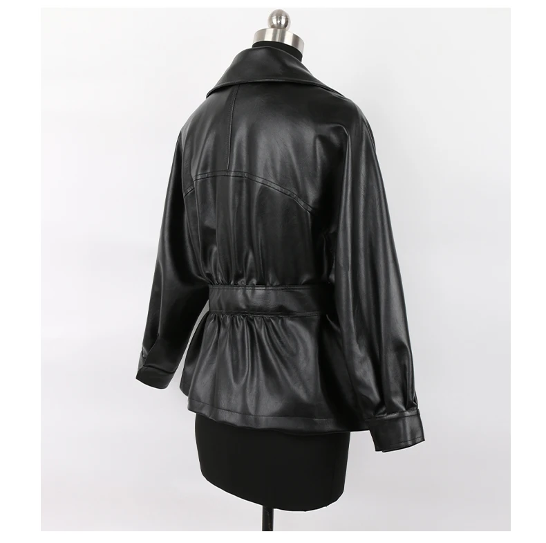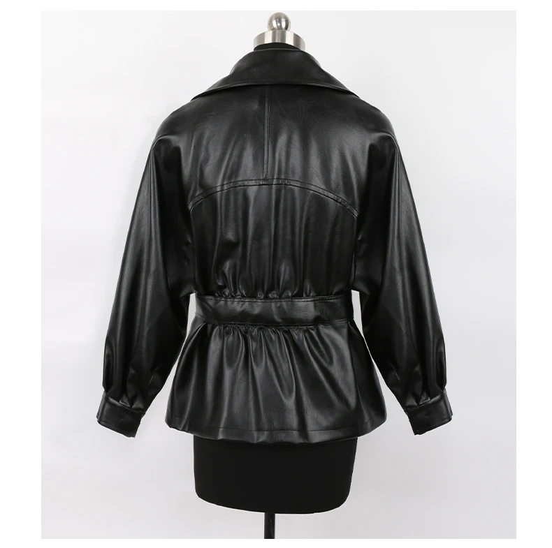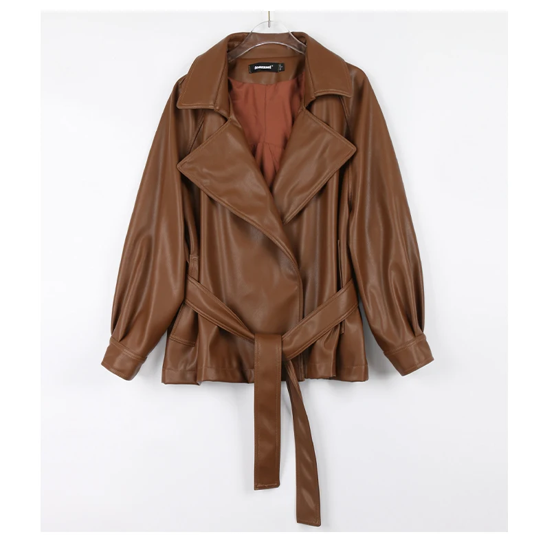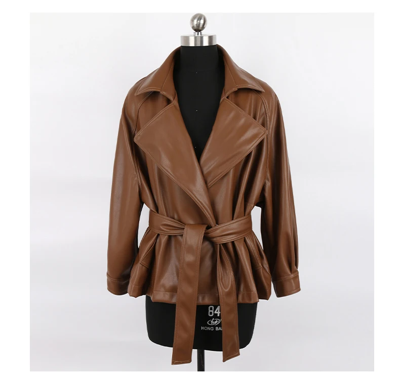 Mauroicardi 2025 Spring/Fall Collection – Women’s Short PU Leather Jacket. Crafted from soft, lightweight material with a fitted silhouette, raglan sleeves, and stylish sash detailing. Available in elegant brown and class
